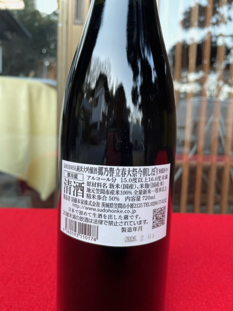 The Junmaidaiginjyoshu Satonohomare Risshun taisakeshibori was squeezed, unfiltered, and raw was released from the warehouse. This is an event for hundreds of years in our family. It is said that it was once held with many people to start brewing sake after coming to this place, and to pray for everyone who came with them to be free of illness, the safety of their families, and good luck. This liquor is offered to the shrine along with the upper tank, and the owner himself prays for it, lowers it, and then it is packed in a bottle and released from the warehouse. It’s a very auspicious sake, exactly, it’s a divine sake. It has been said for a long time that drinking this alcohol will reduce the evil spirit by three inches, and it is a useful sacred sake. Please enjoy it so that your family will be disease-free, safe for your wife, good luck, and heal your wounds and illnesses. It’s been a practice for generations🍶